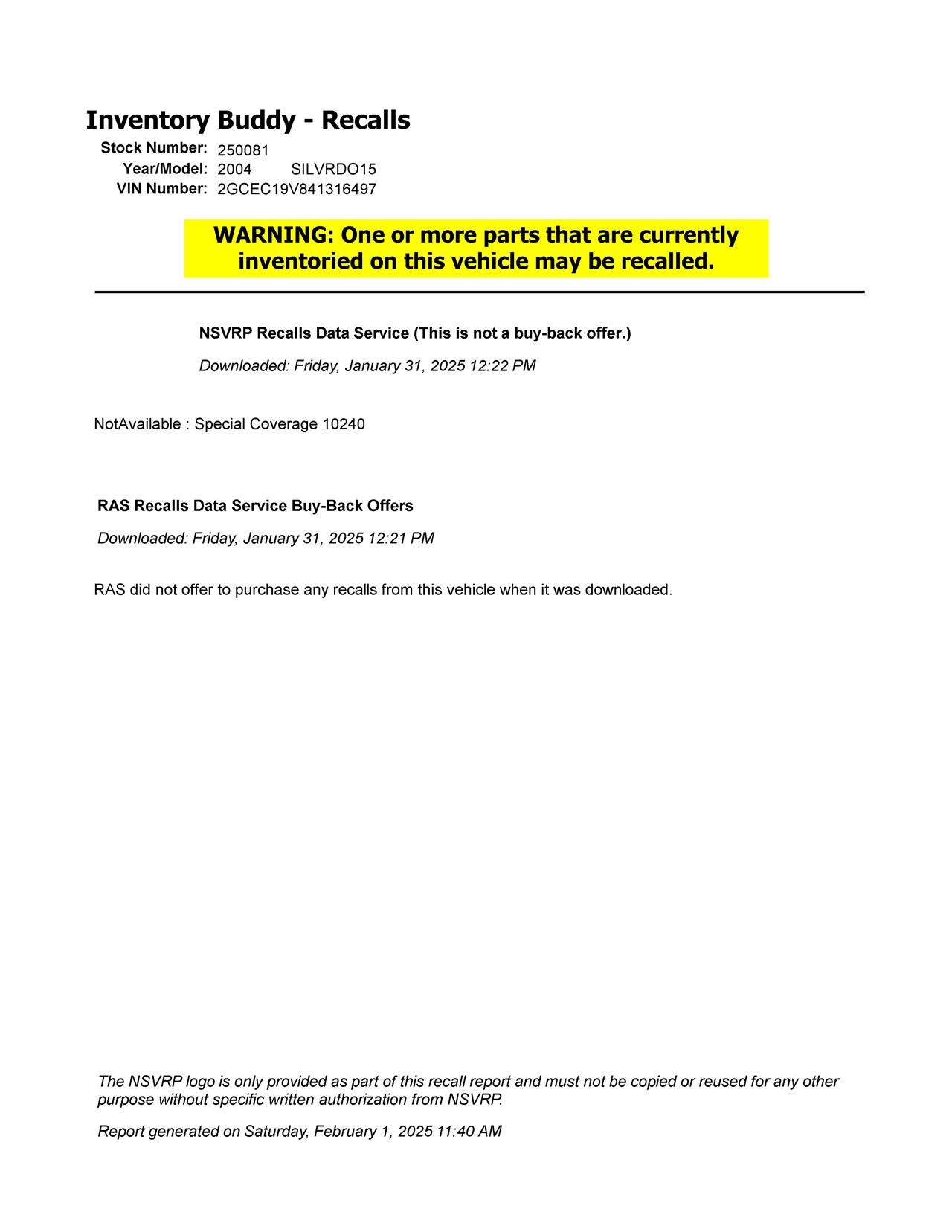 2004 CHEVROLET SILVERADO 1500 PICKUP Part:125 Stock:250081 Door Window Regulator Front RH,4DR,PW 99-06 Electric R. R01697546